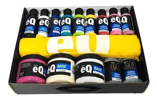 Pintá y decorá todo lo que imagines. Contiene 1 Revista, 9 Acrílicos de 50 cc, 3 Bases de 200 cc, 2 Barnices de 100 cc (Satinado y Brillante) y 1 Delantal de EQ Craft.