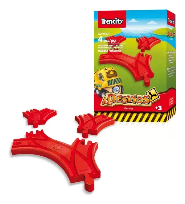 El set Accesorios Desvíos está compuesto por 4 piezas plásticas rojas. Permiten bifurcar caminos o en conjunto conformar grandes ramales.