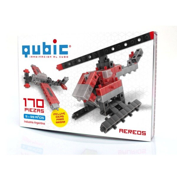 Qubic de 170 piezas para armar aviones y naves en color metalizado, natural, negro y rojo.