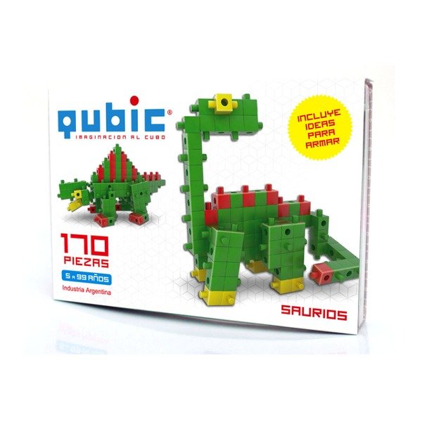Qubic de 170 piezas para armar Dinos en color verde, rojo y amarillo. Incluye instrucciones.