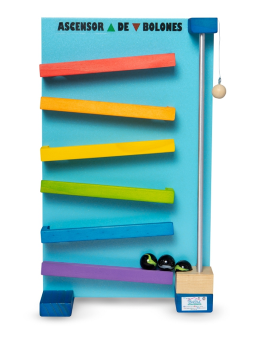 El juego contiene un ascensor con su base y 3 bolones de vidrio.