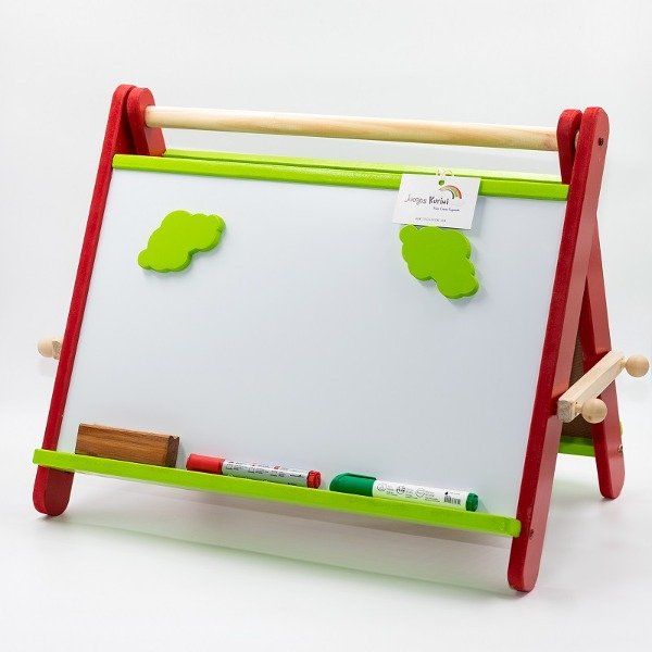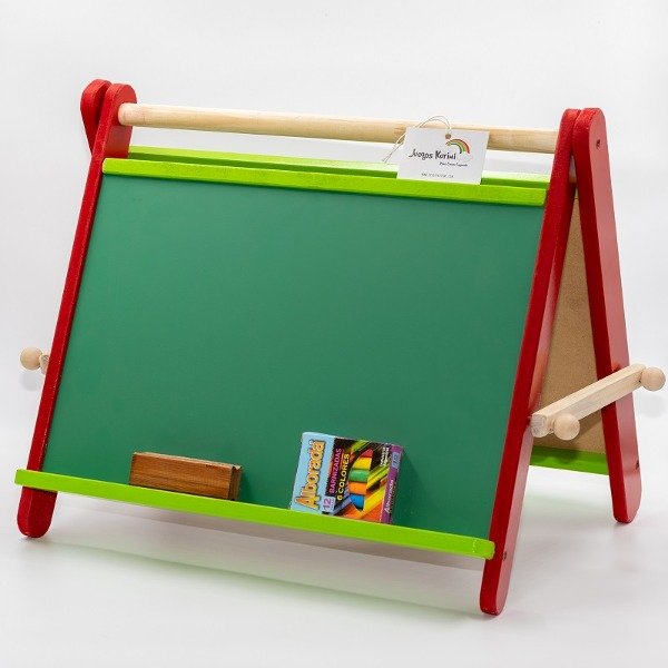 Contiene: Pizarra verde + 6 tizas + pizarra blanca imantada + 2 marcadores + borrador multiuso + hojas para dibujo tamaño A4.