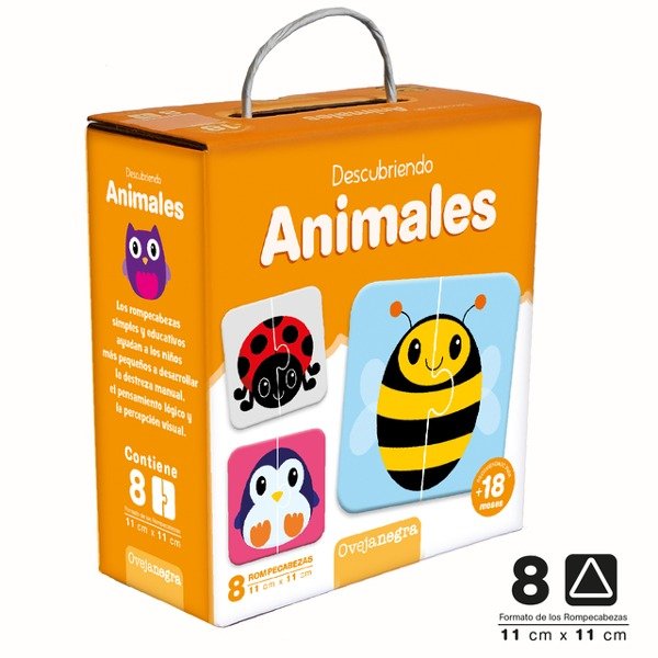 Este juego creativo incluye ocho robustos rompecabezas. ¡Combina las piezas simétricas y descubre los diferentes animales!