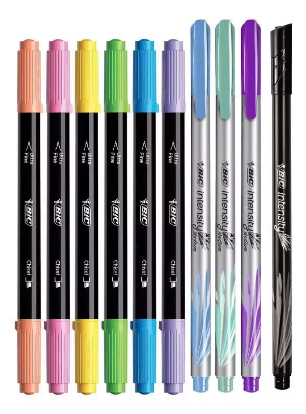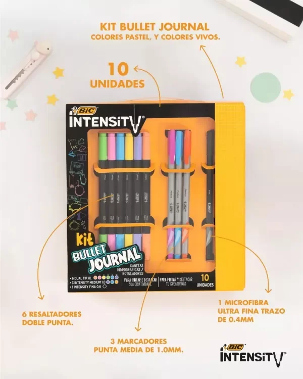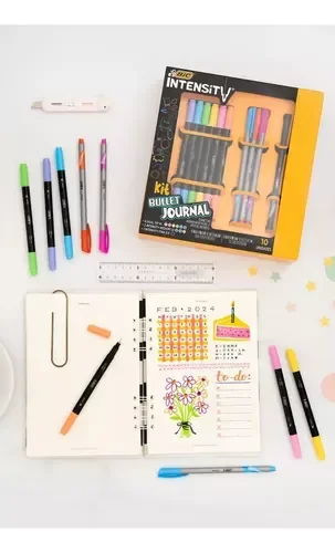 Kit BIC Bullet Journal Intensity Marcadores Microfibras Resaltadores X 10 Lettering Journaling Arte Creatividad Dibujo