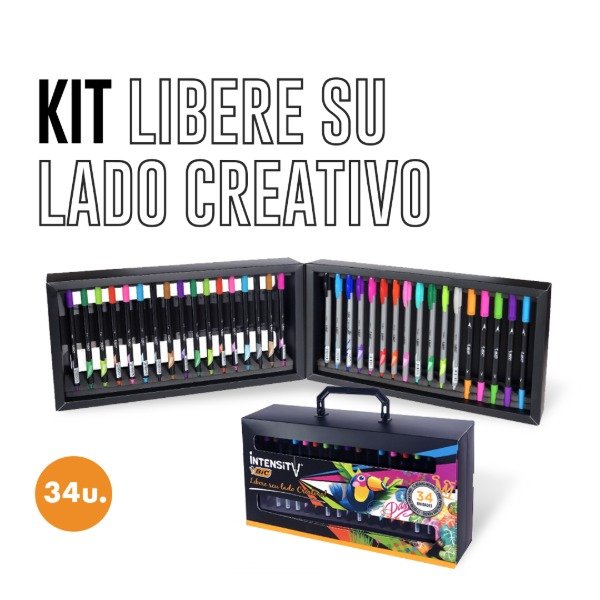 Kit Valija Fibras Marcadores Microfibras Bic Intensity Creatividad x 34 Piezas Colores Surtidos
