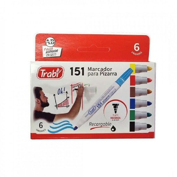 MARCADOR TRABI 151 P/PIZARRA FINO X 6 COLORES PTA REDONDA